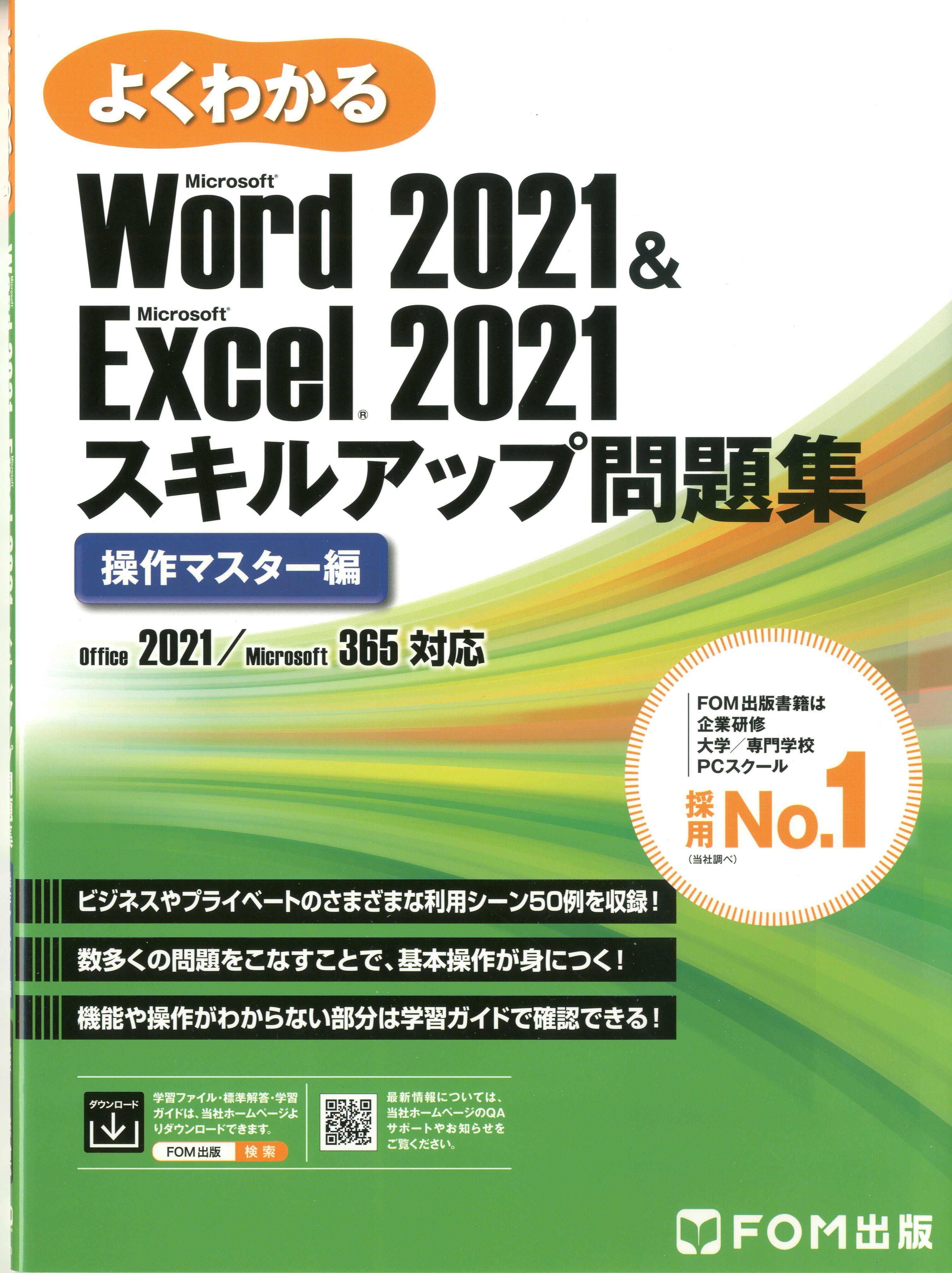 こちらは、FOM出版の「よくわかるWord2021&Excel2021スキルアップ問題集操作マスター編」です。WordとExcel 2021の操作スキルをさらに高めるために特別にデザインされた問題集で、実践的な演習を通じて自分のスキルを磨くことができます。